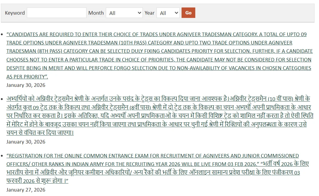 Indian Army Agniveer Recruitment 2026 Important Link