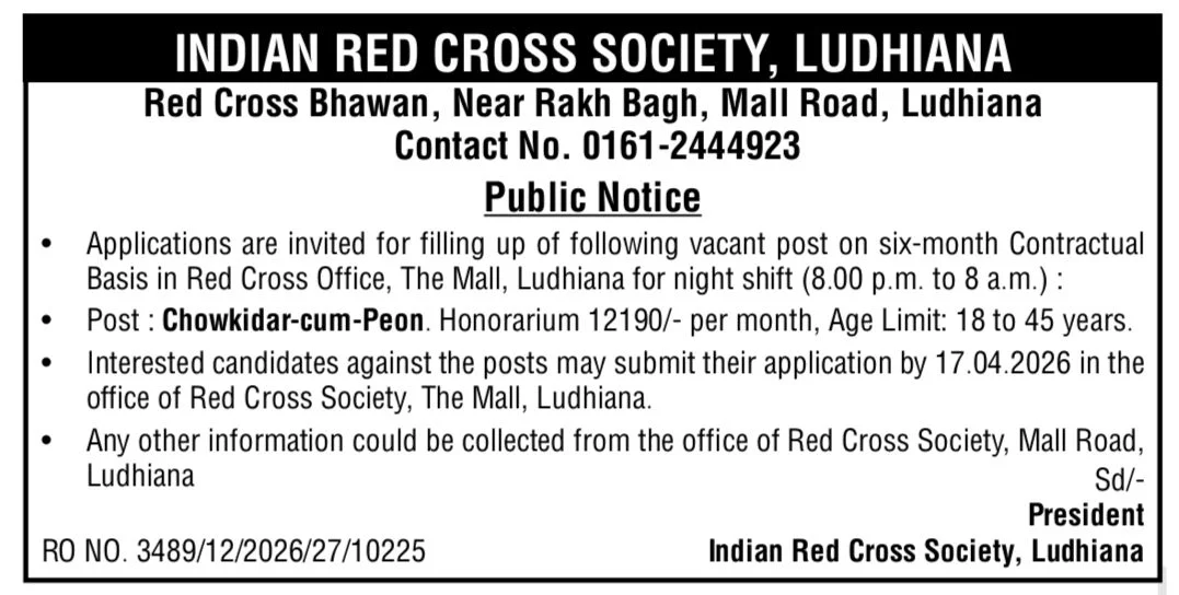 Indian Red Cross Society, Ludhiana has recently posted job openings for Chowkidar cum Peon. Online applications for the Indian Red Cross Society Ludhiana Vacancy 2026 will be accepted starting 8 April, 2026, on the official website (bhu.ac.in). If you are interested in this position and meet all the requirements, please submit your application.
