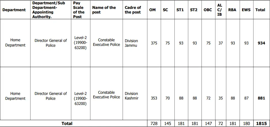 Age Limit (As on 1 January, 2025): The age limit criteria for the candidates who are applying for this JK Police Constable Recruitment 2025 is given below. Candidates in reserved categories will be granted an age reduction in accordance with applicable regulations.