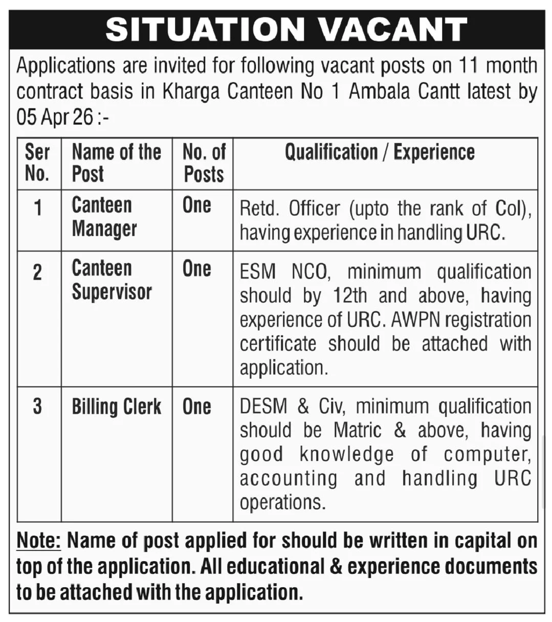 Army Canteen Ambala Cantt Recruitment 2026 Important Link