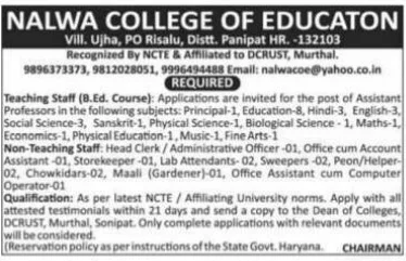 Nalwa College of Education Panipat Recruitment 2026 Important Link