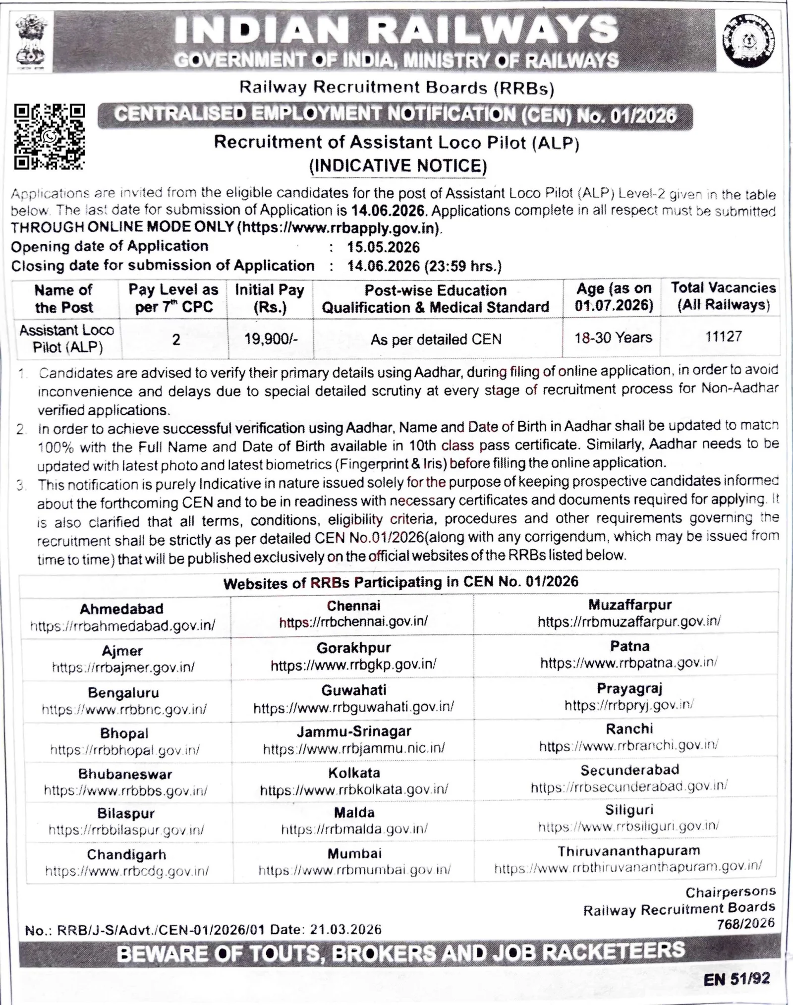 Railway RRB ALP Vacancy Notification 2026 Overview